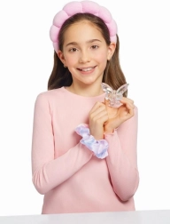 Součástí je motýlí spona pro rychlé uchycení a nadýchaná čelenka, která udrží vlasy mimo obličej při odličování či učení. Barevné pastelové provedení potěší malé i větší milovnice účesů.