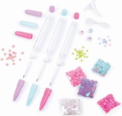 S touto kreativní sadou si děti vyrobí až tři originální plovoucí pera, ve kterých se při psaní elegantně vznášejí třpytky a tematické ikonky. Díky přiloženému trychtýři a hracímu podnosu je plnění jednoduché a čisté. Voda není součástí balení.