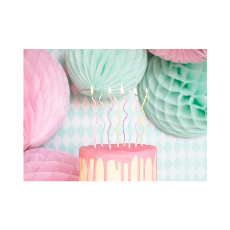 Tato sada dortových svíček nabízí jedinečné úzké spirály, které perfektně ozdobí každý dort. S výškou cca 14 cm jsou ideální pro různé příležitosti, od narozeninových oslav po speciální akce. Svěží pastelové barvy jako žlutá, růžová, modrá, fialová a zelená dodají vašemu dezertu živost a radost.