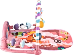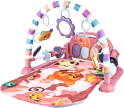 Tato růžová edukační podložka vytvoří bezpečné a podnětné místo pro každodenní hraní. Barevný oblouk se zavěšenými hračkami motivuje miminko k natahování a uchopování, což posiluje koordinaci oko–ruka. Interaktivní pianínko s podsvícenými klávesami nabízí 3 zvukové režimy – tóny stupnice Do–Re–Mi–Fa, krátké zvuky (např. dětský smích) a delší melodie – a tím přispívá k rozvoji sluchu a rytmu.