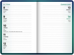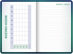 Školní diář Zelený je ideální pro studenty, kteří chtějí mít vše pod kontrolou. Nabízí přehledný kalendář, rozvrh hodin a místo na poznámky.
