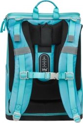 Školní aktovka s vyztuženým tělem a posuvným zádovým systémem, který umožňuje nastavení velikosti podle růstu dítěte.