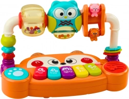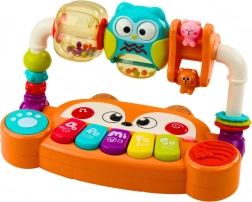 Interaktivní edukační pianko je vybaveno klávesami, které vydávají zvuky, přehrávají melodie a mají označení not, což povzbuzuje dítě ke stisknutí, poslechu a experimentování s hudbou. Navíc je pianko vybaveno barevným obloukem s interaktivními hračkami, který přidává k hraní pohybové prvky.