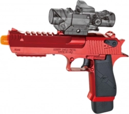 Elektrická dětská pistole kombinuje moderní vzhled s praktickou funkčností. Díky plně automatickému režimu stačí stisknout spoušť a tempo hry se okamžitě zvedne. Tělo z odolného plastu a pohodlná rukojeť se dobře drží i při delším hraní; červeno‑černé provedení a odnímatelný imitovaný optický zaměřovač dodávají hračce atraktivní styl.