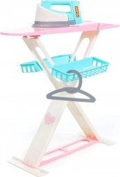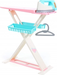 Souprava obsahuje žehlicí prkno o délce 60 cm a šířce 24 cm na stojanu vysokém 85 cm, dětskou žehličku a doplňky pro kompletní žehlicí koutek. Skvělé do dětského pokojíčku i herny. Barevné kombinace jsou dodávány dle aktuální dostupnosti.