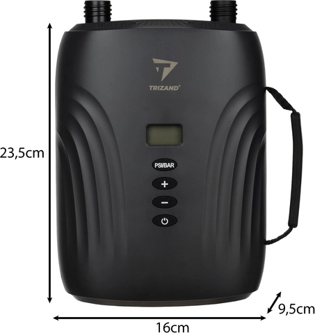Elektrická pumpa Trizand se vyznačuje jednoduchou obsluhou díky LCD displeji a možnosti nastavení tlaku pomocí tlačítek +/-. Praktický design umožňuje mobilní použití z 12V zásuvky cigaretového zapalovače v autě, což z ní činí nepostradatelného společníka na výlety k jezeru, na pláž nebo na kempování. Pumpa je schopna dosáhnout tlaku až 20 PSI a průtoku vzduchu až 350 l/min, což umožňuje nafouknout paddleboard za pouhých 7 minut.