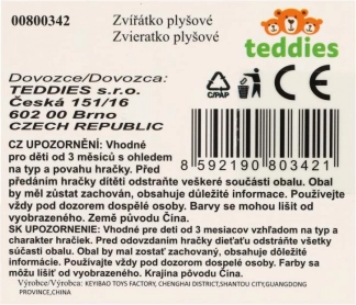 Hebký materiál a šité detaily zajišťují bezpečné mazlení i hraní už od 3 měsíců věku.