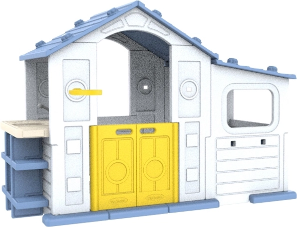 Tento velký dětský domeček je vyroben z kvalitního materiálu HDPE (polyetylén s vysokou hustotou 0,942–0,965 g/cm³), který vyniká pružností a odolností vůči mechanickému poškození. Dvojité stěny lze pro zvýšení stability vyplnit pískem či drobným kamenivem. Velkoformátové díly zajišťují rychlou a snadnou montáž.