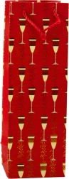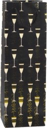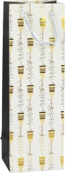 Tato dárková taška na láhev kombinuje reprezentativní vzhled a funkčnost. Efektní potisk skleniček a bublinek se zlatým akcentem dodá každému dárku slavnostní tón – hodí se na svatby, narozeniny, výročí, Silvestra i firemní akce. Univerzální rozměr bezpečně pojme většinu standardních lahví.