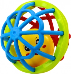 Uvnitř je umístěna žlutá plastová kulička, která při zatřesení vydává jemný zvuk chrastítka a podporuje interakci a zvídavost. Ergonomický tvar skvěle padne do malých dětských ruček a nízká hmotnost usnadňuje manipulaci.