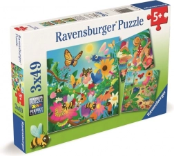 Tento balíček zahrnuje tři různé puzzle, z nichž každé je složeno z 49 dílků. Obrázky zobrazují krásná a barevná zobrazení hmyzích přátel v jejich přirozených stanovištích. Každý obrázek má rozměry 21 x 21 cm, což je ideální pro mladší děti, které si oblíbily skládání puzzlů.