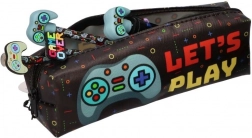 Praktické jednokomorové pouzdro s herním designem potěší každého fanouška videoher. Kompaktní rozměry 19 × 6 × 5 cm se snadno vejdou do batohu, zatímco pevný zip a kvalitní zpracování zajistí dlouhou životnost. Moderní potisk s ovladačem a sloganem LET’S PLAY dodá vašemu školnímu vybavení originální vzhled.
