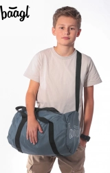 Sportovní taška Hoop Dust Blue: Lehká a skládací s nosností 5 kg a objemem 22 l. Vybavena nastavitelným popruhem a integrovanou kapsou, do které se taška snadno sbalí. Vyrobena z recyklovaného materiálu a přizpůsobitelná pro cestování.