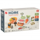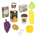 Obsahuje 36 součástí, včetně ovoce, zeleniny, jogurtů, nápojů a dalších položek, stejně jako herní telefon a barevné nálepky. Tato bezpečná a odolná hračka je vyrobena s ohledem na bezpečnost dětí, bez ostrých hran a je ideální pro kreativní scénáře a realistické zkušenosti.