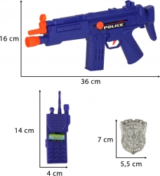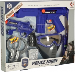 Tato sada obsahuje základní prvky policejní výbavy včetně pistole, karabinu, pout, masky a dalších doplňků pro realistickou hru.