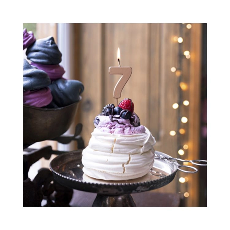 Ozdobte svůj dort stylově s krásnou rose gold dortovou svíčkou ve tvaru číslice sedm.