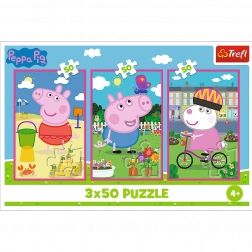 Představujeme puzzle 3x50 Peppa Pig - Síla přátelství, které přináší tři různé obrázky s oblíbenými postavami z dětské pohádky. Každá skládanka tvoří obrázek o rozměrech 275x180 mm, ideální pro menší děti.