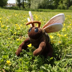 Jemná křídla s žilkováním, pruhovaný zadeček a velké oči dodávají hračce živý výraz, který si děti zamilují.
