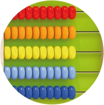 Pět řad korálků v jasných barvách vede děti k přirozenému objevování čísel, sčítání a odečítání zábavnou formou.