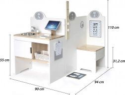 Multifunkční zdravotnické centrum od známé a ceněné značky Viga je skvělá hračka, která vašemu dítěti umožní poznat povolání lékaře nebo zdravotní sestry. Zahrnuje ordinaci, čekárnu, umyvadlo a recepci spolu s profesionálními lékařskými nástroji jako je stetoskop, tlakový měřič, reflexní kladívko, teploměr, rentgenový přístroj, injekční stříkačky, tablety a balení na pilulky.