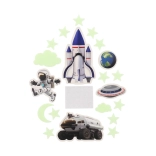 Proměňte dětský pokoj v malou galaxii! Sada obsahuje svítící hvězdy, planety a další vesmírné motivy, které se po nasvícení ve tmě rozzáří a vytvoří kouzelnou atmosféru. Ideální pro malé objevitele, pomáhá uklidnit se před spaním a zútulnit prostor.