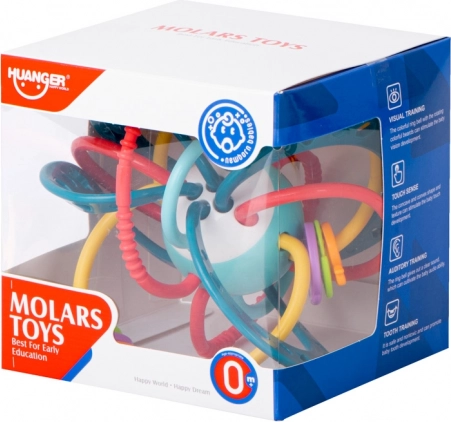 Toto smyslové kousátko a chrastítko bylo navrženo pro nejmenší – snadno se drží, je lehké a má bezpečný tvar bez ostrých hran. Různorodé povrchy jemně masírují dásně a pomáhají při nepohodlí během zoubkování, zatímco chrastící prvky přirozeně rozvíjejí sluch a výrazné barvy podporují zrak.