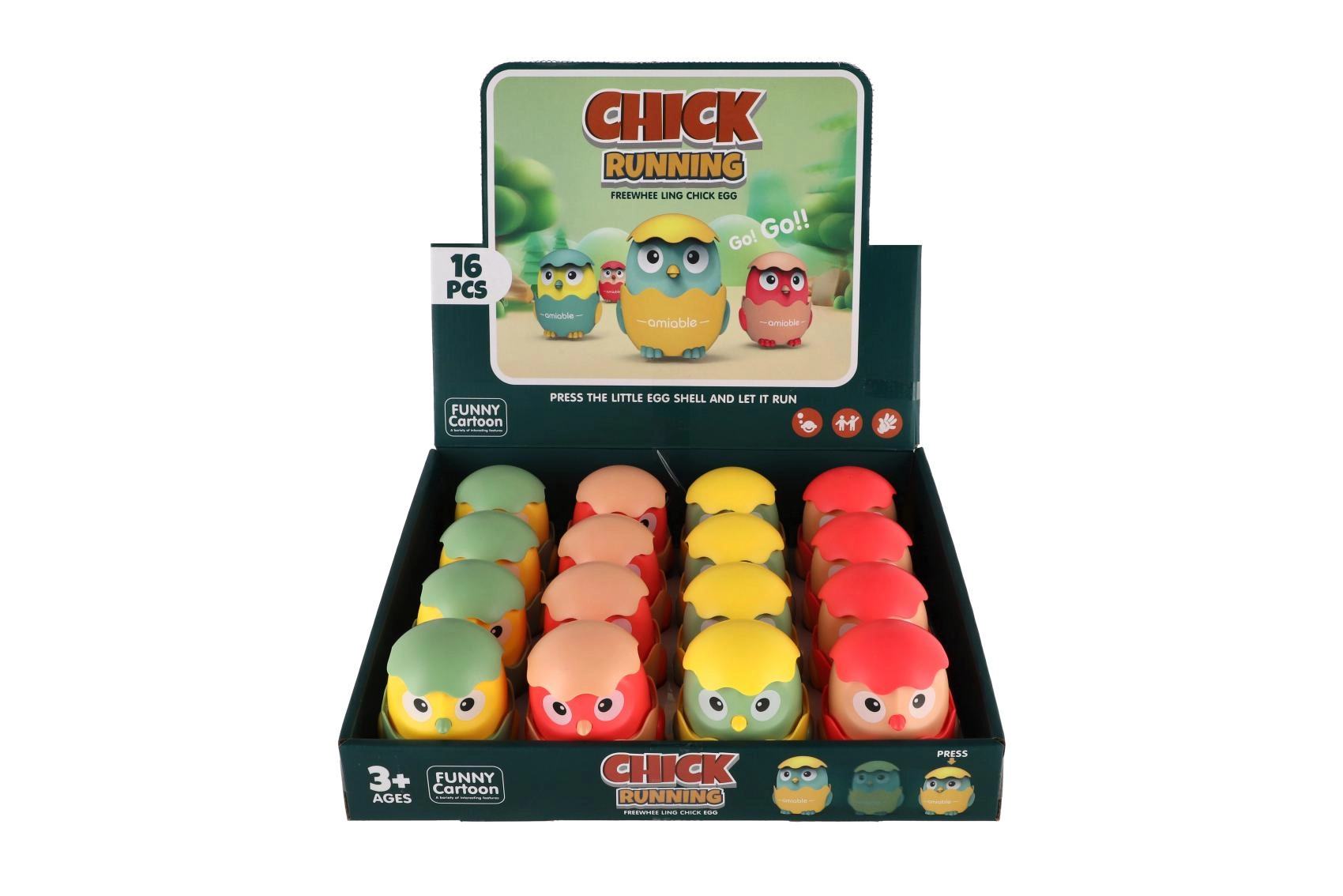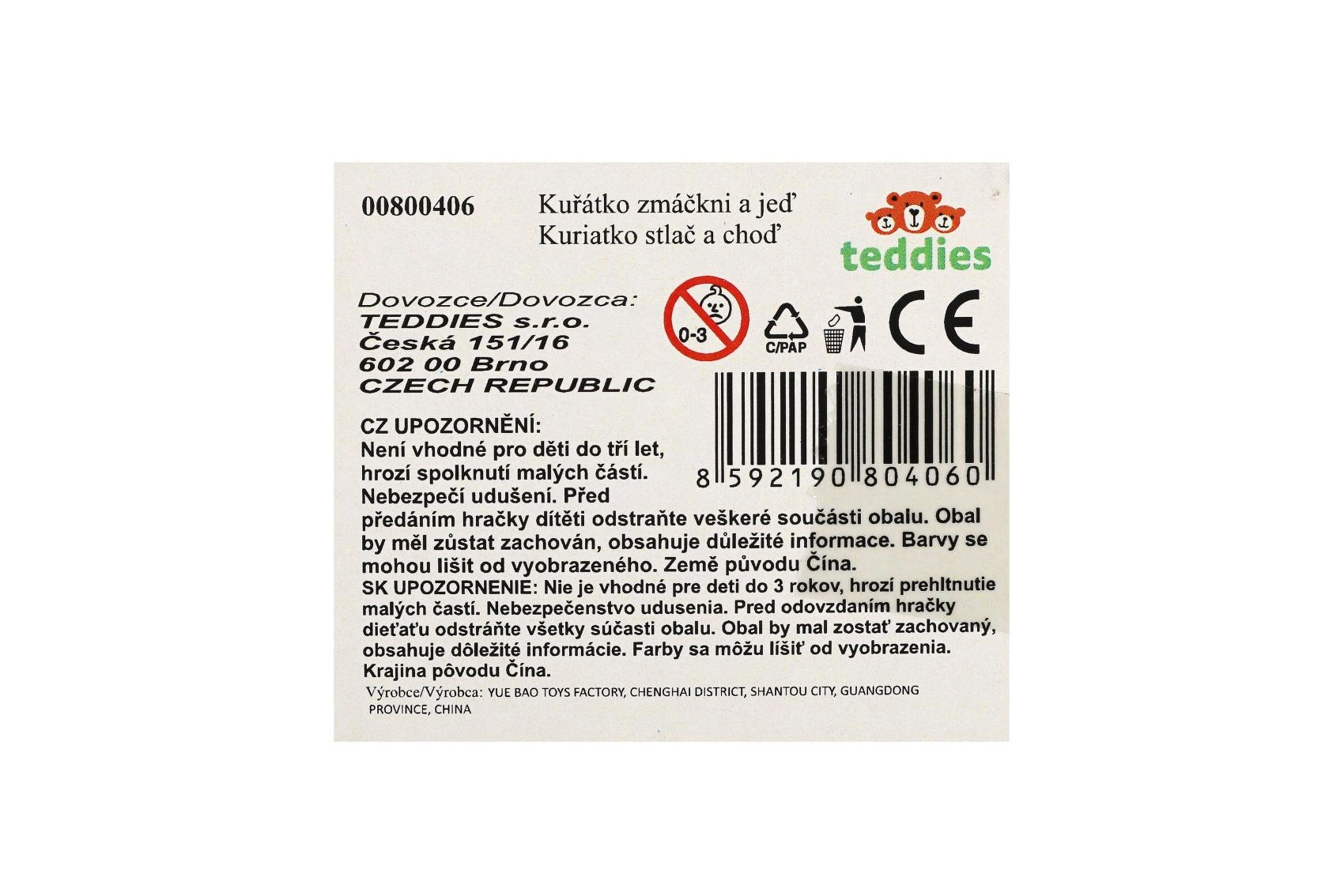 Stiskni a jeď! Veselé kuřátko v barevném "vajíčkovém" kabátku se po zmáčknutí rozjede díky setrvačníkovému mechanismu. Hračka podporuje rozvoj jemné motoriky, koordinaci oko–ruka a přirozenou zvídavost dětí.