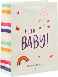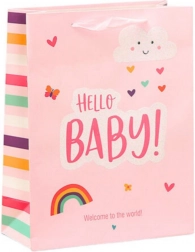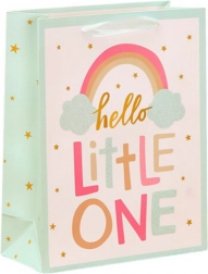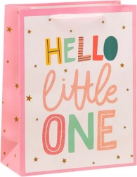 Tato dárková taška pro děti s pastelovým designem je ideální pro darování dárků k příležitosti narození dítěte, baby shower nebo prvních narozenin. Ozdobená roztomilými motivy s nápisy „Hello Baby” a „Hello Little One”, tato taška přináší radost a teplo do každého slavnostního dne.