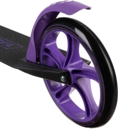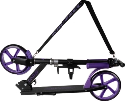 Tato černo‑fialová koloběžka je skvělou volbou pro děti od 8 let i starší jezdce, kteří chtějí pohodlné a bezpečné městské přesuny. Velká 200mm kola tlumí nerovnosti a zajišťují stabilitu, zatímco protiskluzový nášlap a spolehlivá nožní brzda dávají kontrolu v každé situaci. Skládací mechanismus a nastavitelný popruh usnadňují přepravu i skladování.