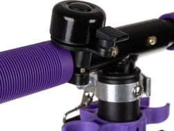 Pěticípé fialové ráfky a široké PU pláště zajišťují hladký odval a stabilitu na městských chodnících i nerovnostech.