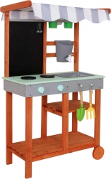Tato odolná a stabilní kuchyně je speciálně navržená pro venkovní použití, aby odolala jak hrubé hře, tak i rozmarům počasí. Kuchyně je bez ostrých hran a její ergonomická konstrukce je bezpečná pro každého malého kuchaře.