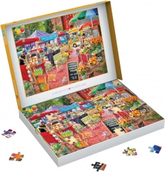 Puzzle s motivem Den na farmářském trhu od značky Eurographics nabízí zábavu pro celou rodinu. Skládání usnadňuje vytištěný obrázek na víčku krabičky.