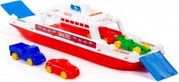 Loď je vyrobena z kvalitního, bezpečného plastu a díky zářivým barvám si získá pozornost dětí na první pohled. Hodí se do domácího prostředí i ven – do vany, bazénku či k mělké vodní ploše. Sada obsahuje 4 mini autíčka, která lze snadno nakládat a vykládat pomocí modrých ramp na obou stranách.