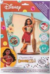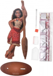 Balení obsahuje vše potřebné pro vytvoření obrazu: dřevěnou desku ve tvaru postavičky Moany, dřevěný stojan, pero na aplikaci kamínků, misku, vosk a sadu barevných kamínků. Produkt má rozměr přibližně 25 cm, takže je ideální pro domácí dekoraci nebo jako dar pro milovníky kreativní zábavy.