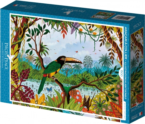 Puzzle Barevný Arassari s 1500 dílky nabídne hodiny zábavy a ohromí nádherným obrazem tropického ptáka.