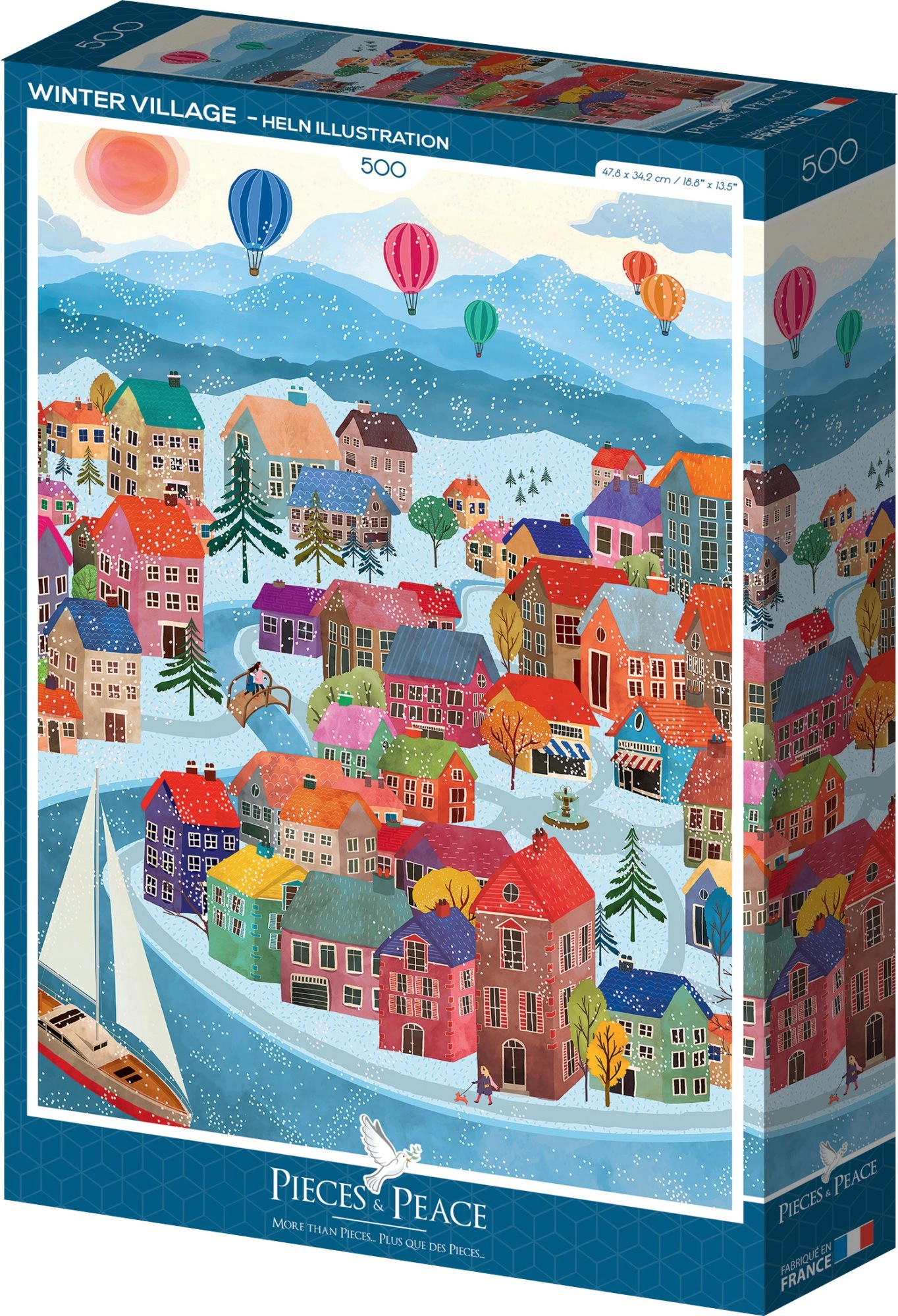 Užijte si zimní atmosféru s puzzle kolekcí Vesnice v zimě. Tato sada obsahuje 500 dílků, které dohromady tvoří krásnou zasněženou krajinu. Nádherný design a kvalitní materiál zajistí příjemnou zábavu pro každého milovníka puzzle.