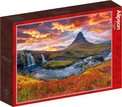 Puzzle Vodopád Kirkjufellsfoss vás přenese na magické místo Islandu, kde kaskádový vodopád předvádí svou přirozenou krásu. Elegantní design a věrné barvy přinášejí živoucí zážitek z barev a detailů.