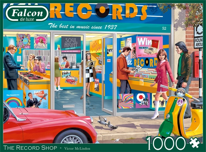 Užijte si skládání s puzzle FALCON, které obsahuje 1000 dílků a tvoří krásný obraz hudebního obchodu.