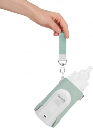 Svůj ohřívač můžete pohodlně nabíjet pomocí USB-C konektoru z elektrické zásuvky, powerbanky, nebo i automobilu. Disponuje také popruhem pro snadné přenášení a připevnění k rukojeti kočárku nebo tašce. Bezpečnostní ovládací tlačítko zajišťuje, že se ohřívač spustí pouze po vložení lahve.