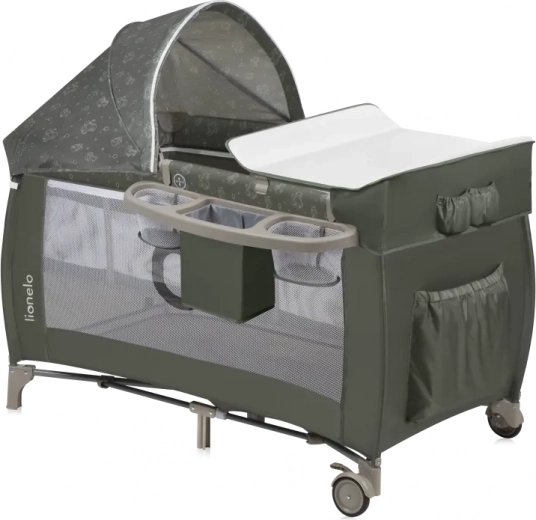 S maximální nosností 15 kg bez vyvýšení matrace a 9 kg s vyvýšením, splňuje Lionelo Sven Plus všechny normy EU a je dodáván s koly s brzdou a pevnými nohami pro snadnou manipulaci.