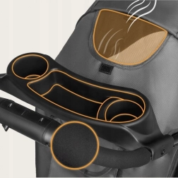 Měkká matrace je odolná proti oděru a nečistotám, což zajišťuje dlouhodobé pohodlí a snadnou údržbu. Velký úložný prostor ve spodní části kočárku a praktická taška jsou ideální pro všechny potřebné věci na cestách. Kočárek je vybaven odpruženými koly s brzdou, které zajišťují hladkou a bezpečnou jízdu.