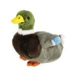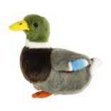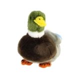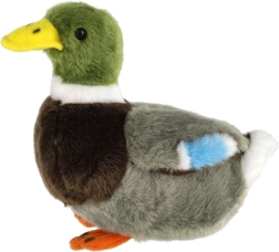 Zelená hlavička, žlutý zobáček, hnědá hruď a šedé tělíčko s křídly působí věrně a děti zaujmou.