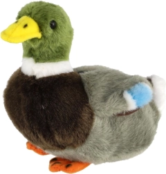 Roztomilý plyšový kačer inspirovaný kachnou divokou zaujme realistickým vzhledem a mimořádně hebkým povrchem. Díky měkké výplni je ideální na mazlení, hraní i jako dekorace do dětského pokojíčku. Jemný plyš, věrné barvy a bezpečné provedení od narození potěší malé i velké milovníky zvířátek.