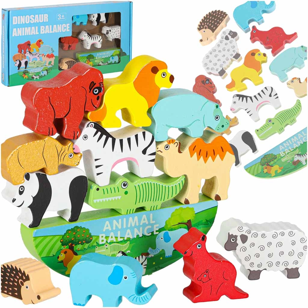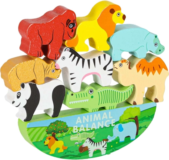 Tato barevná dřevěná balanční hra nadchne každé dítě. Úkolem je pokládat zvířátka jedno na druhé a hledat stabilní kombinace na houpající se základně. Děti si u toho procvičí jemnou motoriku, trpělivost a logické uvažování, zatímco objevují tvary a barvy zvířat ze safari.