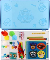 Průhledný box s reliéfním logem TLAPKOVÁ PATROLA bezpečně uloží všechny pomůcky. Díky segmentovaným přihrádkám zůstane vše uspořádané a připravené k tvoření doma i na cestách.