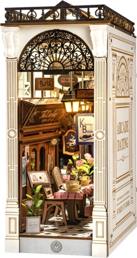 Proměňte svou knihovnu v romantický kout díky nádherné 3D puzzle zarážce na knihy inspirované evropskou pasáží. Tato ucelená skládanka s knihovnou a útulnou kavárnou vnese do vašeho domova atmosféru přátelských setkání.