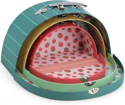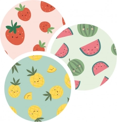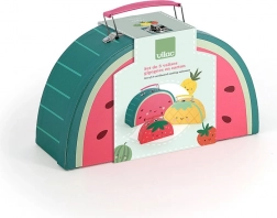 Sada obsahuje tři kufříky různé velikosti, které lze snadno skladovat jeden do druhého. Každý kufřík je zdoben motivy šťavnatého ovoce, jako jsou vodní meloun, ananas a jahody, a přináší kouzlo do dětského prostředí.