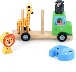 Tato unikátní dřevěná hračka ve formě nasazovacího auta kombinuje pohyblivé dopravní prostředky a roztomilá zvířátka ze safari. Vaše dítě si užije spoustu zábavy při rozpoznávání zvířátek a tvoření příběhů. Hračka je ideální pro rozvoj jemné motoriky, obratnosti a koordinace ruka-oko.