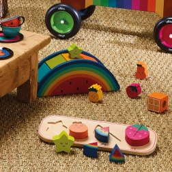 Jedinečný design této vkládačky bude skvělým doplňkem každého dětského pokoje nebo herny.