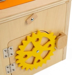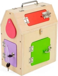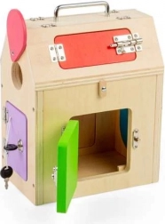 Bigjigs Toys Activity board Domeček je víceúčelová hračka určená pro malé děti. Oblíbené zámky a labyrinty poskytnou hodiny zábavy a rozvíjí důležité dovednosti: